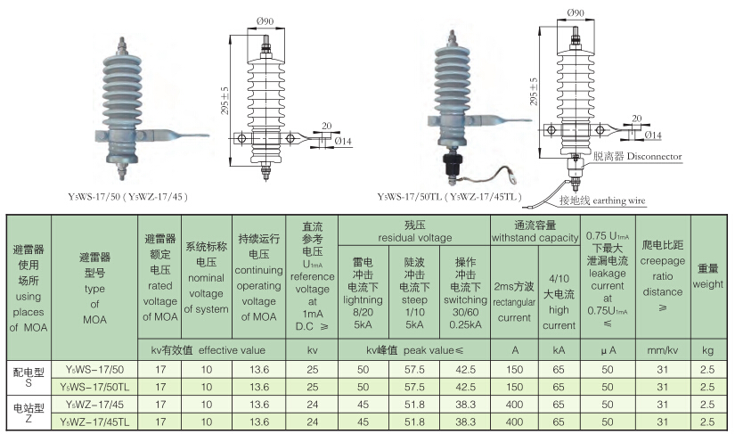 瓷套避雷器