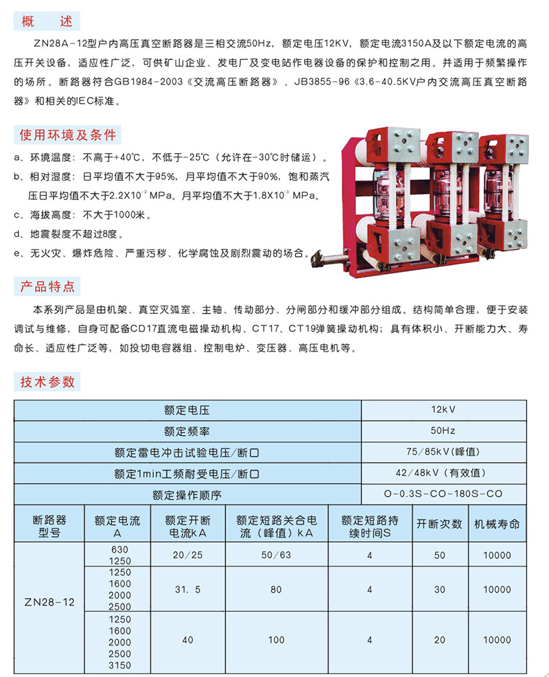 ZN28A-12型戶內(nèi)高壓真空斷路器