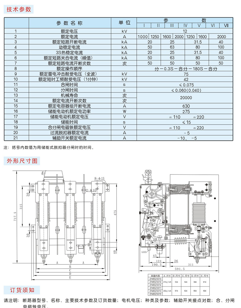 ZN65-12型戶內高壓真空斷路器