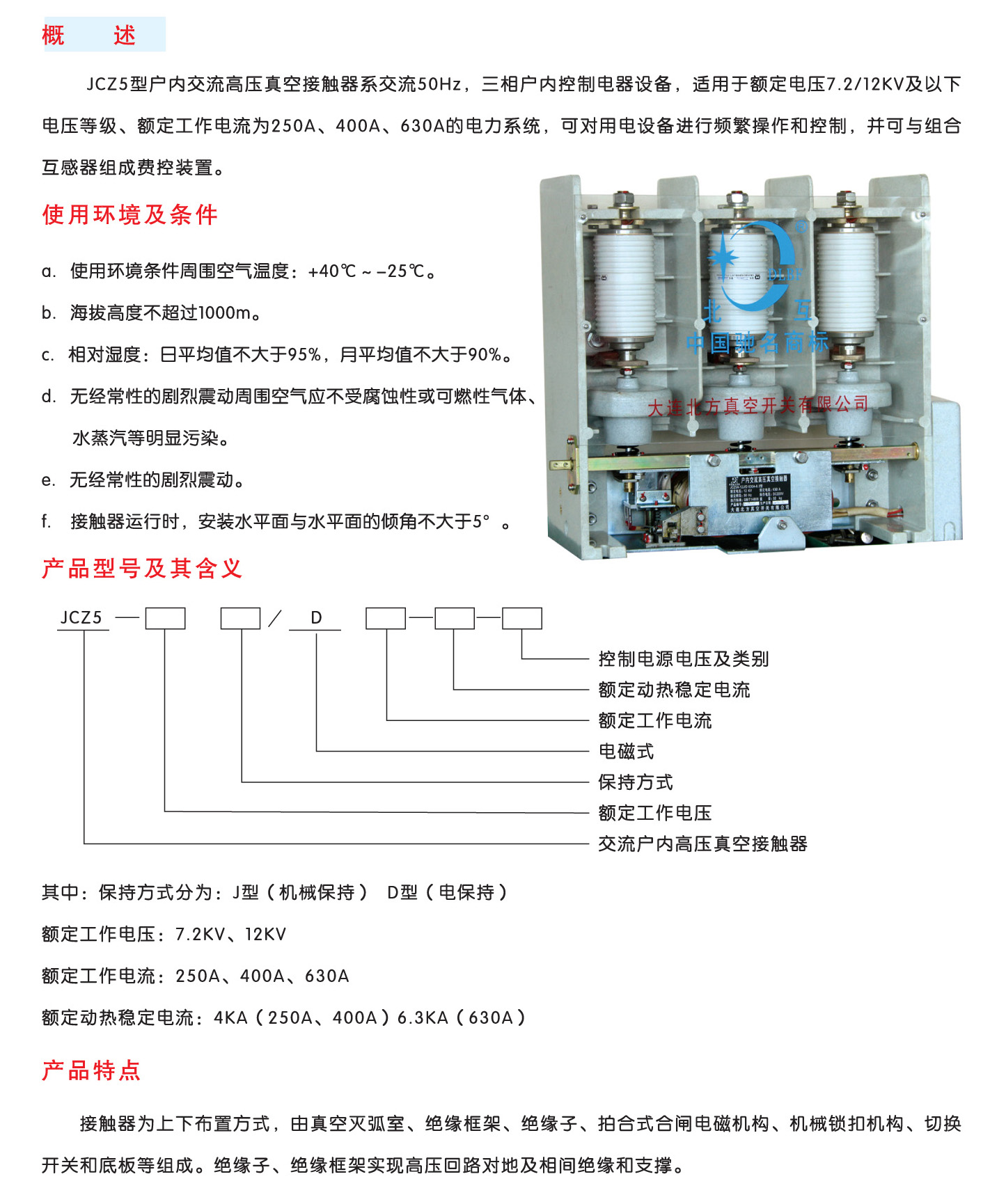 JCZ5-12型真空接觸器